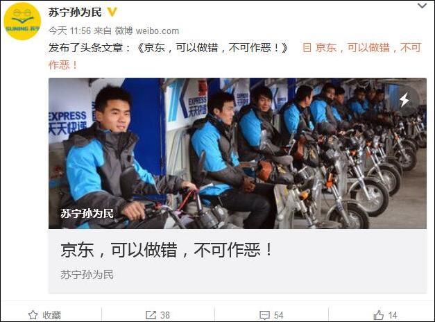 气得苏宁当时的副总裁孙为民直接就发文章,指责京东 “ 作恶 ” 。