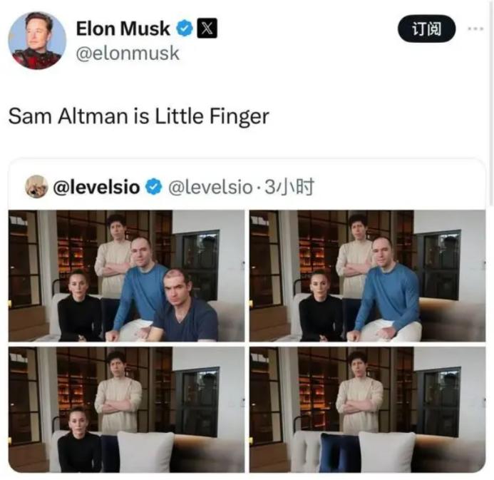 “山姆·奥特曼是小指头。”马斯克转帖不忘讥讽。