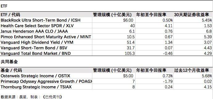 主动管理的债券ETF可能会产生更多收益。Pimco Enhanced Short Maturity Active ETF使用证券化债务、期货和期权这些工具创造了5.4%的收益率。其他可以考虑的还有收益率为5.4%的JPMorgan Ultra-Short Income ETF和收益率为5.5%的BlackRock Ultra Short-Term Bond。