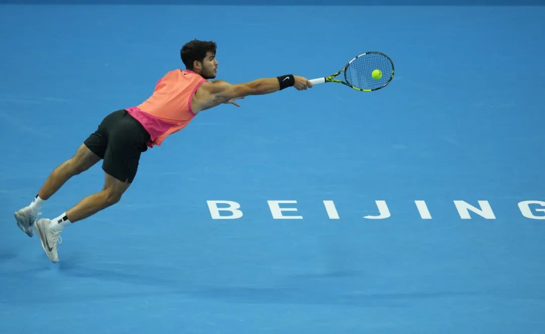 阿尔卡拉斯在比赛中救球。