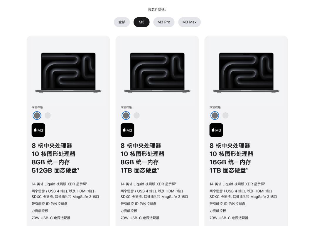 之前专属于 M3 Pro 与 M3 Max 的深空黑色也下放到 M4 芯片标准版机型上,覆盖整个 Pro 系列产品线。