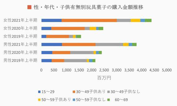 几年前日本还有机构对食玩消费人群、消费金额进行了调查,按照性别、年龄、有无孩子等,统计了约6000家店铺半年内的食玩消费金额。