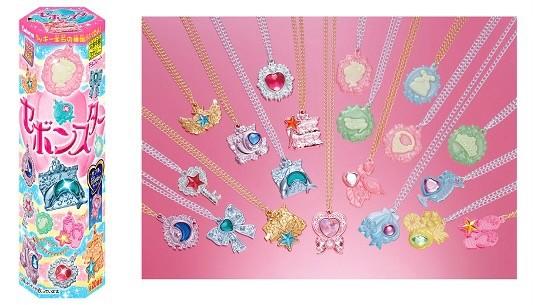 Kabaya食品于1979年推出的“セボンスター(暂译:闪亮星)”,是一款面向女童的吊坠食玩,独特的六边形包装盒(据说是为了方便儿童拿取而特意设计)内有五颜六色的吊坠项链和巧克力,闪闪发亮和可爱是其最大卖点,作为“零食卖场的宝石箱”为人熟知喜爱,是一款长青食玩产品。