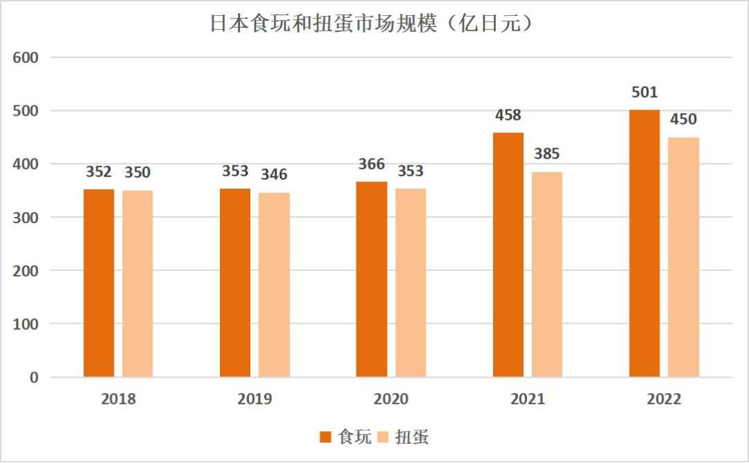 根据万代公开报告中引用的数据,2022年日本食玩市场已达501亿日元,同比增长9.39%。