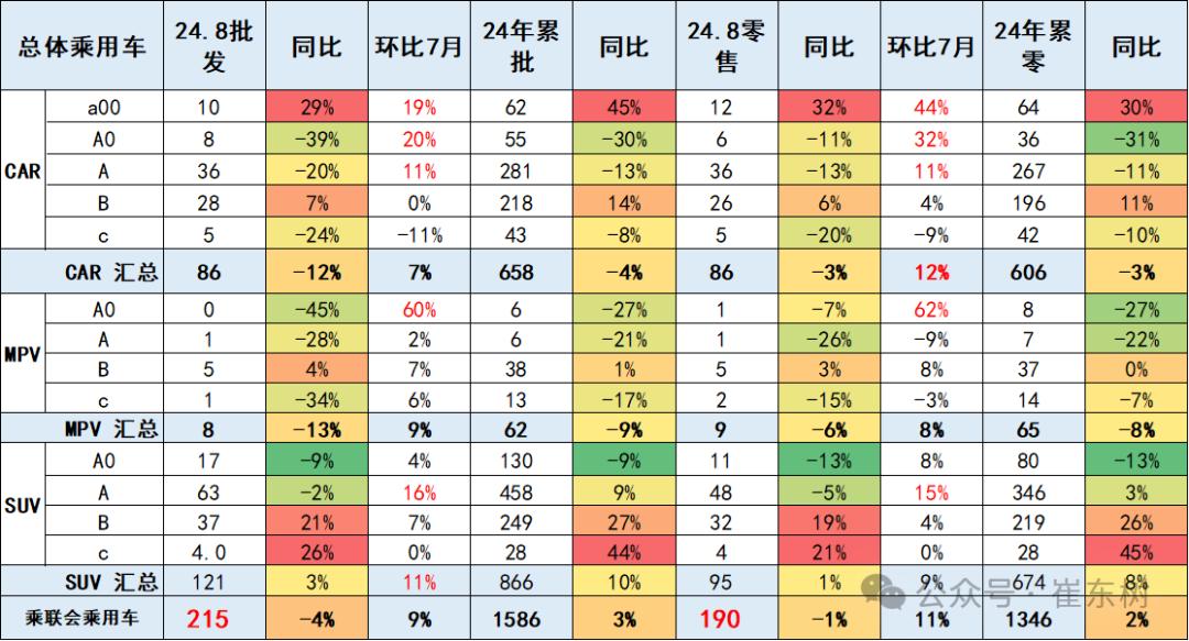 这样的份额分布情况,在SUV市场也是如此,只是A0级SUV的销量总额比C级SUV更多,在各细分市场的总量排名中处于第三位。