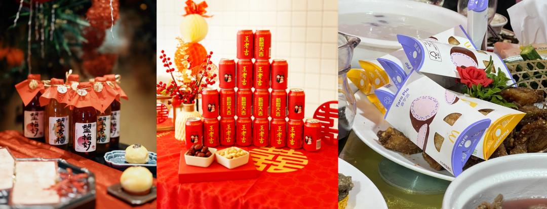 除了好望水,王老吉的“新婚大吉”罐、麦当劳的“香芋派”等自带祝福寓意的谐音名称,也都可以看作是品牌进入婚庆场景的敲门砖。