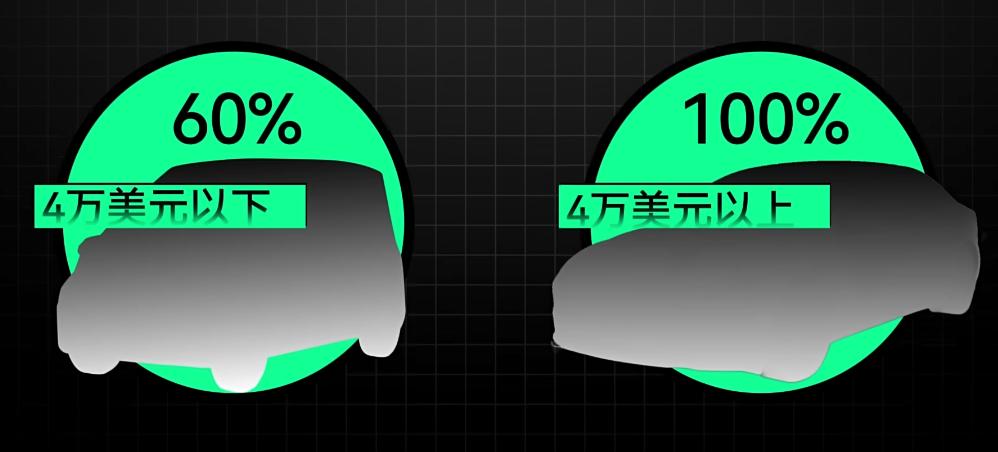 而绝大多数特斯拉的定价,都落在这个属于需要被 “ 税 ” 100% 的区间里。