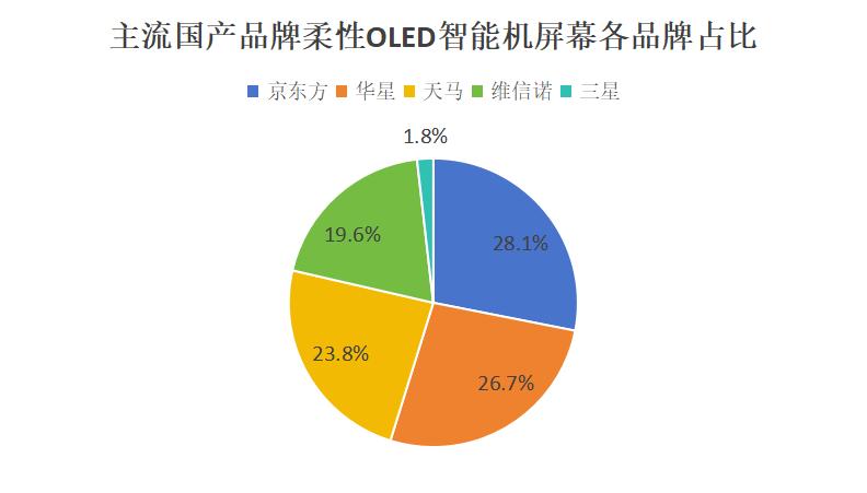 主流国产品牌柔性OLED智能机屏幕各品牌占比
