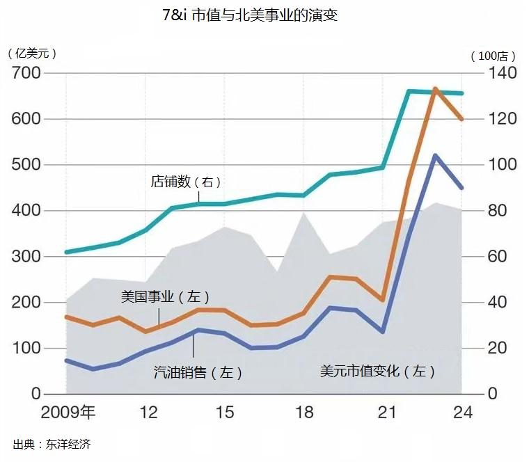 说起来,引发这笔收购案件是源于7&i自身。敢于进军北美便利店市场,体现了7&i的经营智慧和勇气,当然也有利弊,利在于事业规模出现腾飞,2021年以210亿美元的价格收购北美第三大加油站便利店,业绩规模显著扩大,特别是北美同行非常看重的汽油销量,增长了两倍多;弊或者风险,在于涉足了北美特有的市场圈,引起同业关注甚至是警觉,也引发收购意图。
