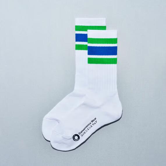 全家则不同,它想“开创在便利店购买服装风格”,初期投放的是绿色和蓝色条纹搭配的短袜(含税429日元)。后来增加了T恤、开衫、短裤等,大体实现全身服饰搭配功能,到2024年有大约50个品种。