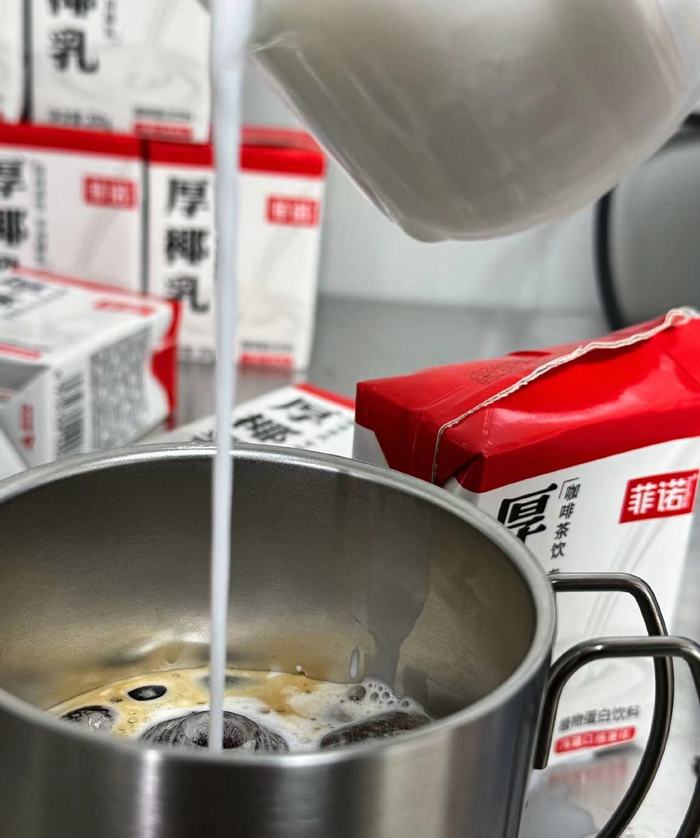 咖啡爱好者不会对菲诺这个名字陌生——这家成立于2015年的公司如今的明星产品是厚椰乳,自2021年瑞幸的生椰拿铁爆火以来,这一咖啡品类开始出现在各类茶饮咖啡店的菜单上,而菲诺的厚椰乳作为生椰拿铁核心原料之一,也进入了快速增长轨道。