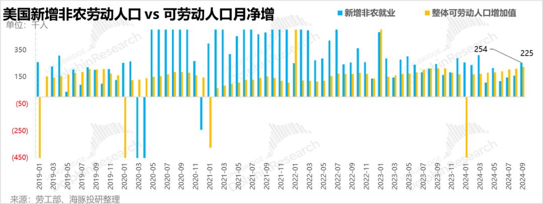 同时9月新增非农就业25.4万人与美国再次明显超过了美国整体劳动力池子(含劳动人口和非劳动人口)的月增数量22.5万人,在目前就业供需基本平衡(1.13个就业岗位对应1个失业的人),最底层的供需也相互匹配,失业率在就能够稳在4-4.2%上下了。