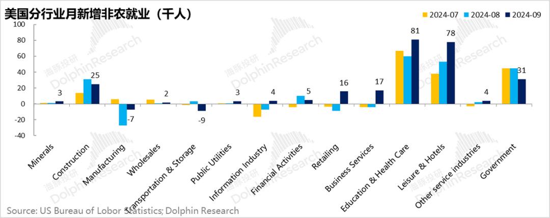 分行业来看,代表美国疫后重建的基建用工仍然需求较强,而制造业,无论是耐用品还是非耐用品,用工都在净裁员当中,只是裁员的力度有所放缓。