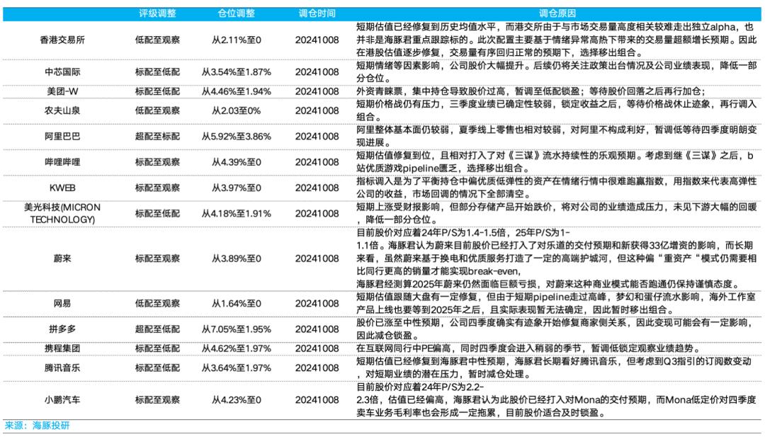所以,对于这次中概的回调,海豚君认为,不同于疫情后的大涨回调后一路地板摩擦,这次的回调也许是为了更好的回归。因此,这次调出之后,海豚君会更加重点关注财政政策力度,与落地到四季度的国内经济运行指标,如果基本面改善,在2025年预期修复的情况下,海豚君认为走过这波情绪过后的估值回调以及财报季的放雷,海外的中国资产反而可能迎来持续性机会。