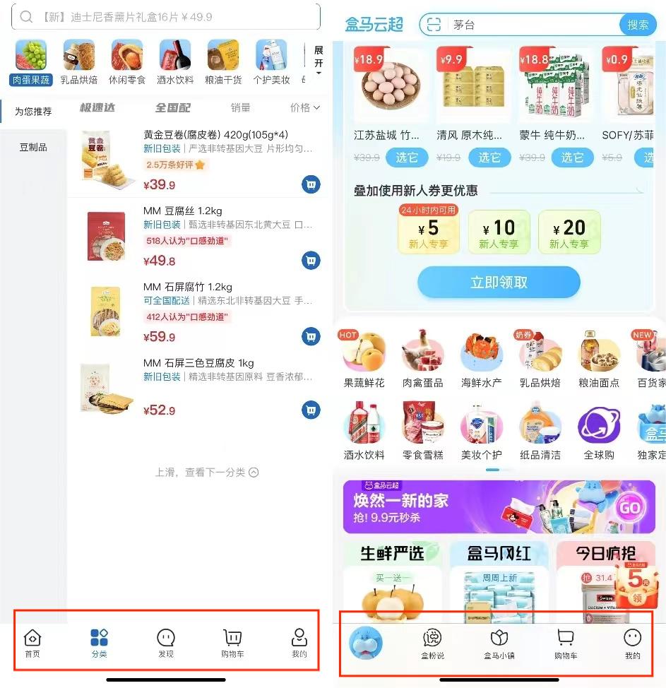 图:山姆与盒马App对比