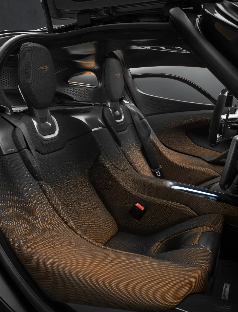 首先这次 W1 的宣传色用了迈凯伦经典的橙色,橙色与黑色的搭配之下非常显眼,而且和 P1 那种整体化不同,在 W1 上这意味着两个不同的功能区。