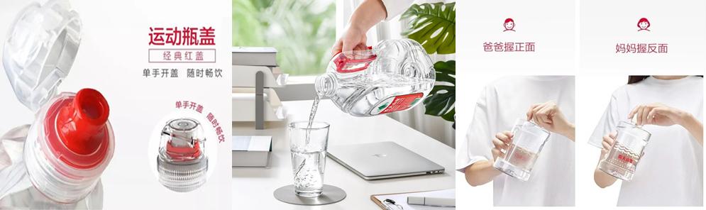 这一点早在农夫山泉系列产品上的得到了认证。相继推出的运动盖装水、把手瓶、婴儿水的凹槽设计等,使农夫山泉的水收获了众多消费者好评。