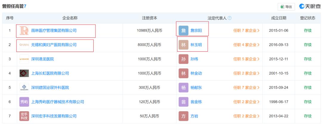 掌管“陈氏家族”的美迪亚集团之前,王为民已经与之产生多年交集。据天眼查显示,王为民2009首次持股无锡虹桥医院;2015年首次持股深圳港龙医院。此外,王为民2005年首次担任无锡虹桥医院的执行董事;2005年首次担任杭州天目山医院的监事;2015年首次担任深圳港龙医院的董事,2018年退出。