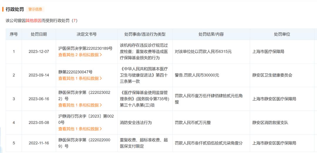 在“美迪亚系”医院中,无锡虹桥医院还并非个例,其4家兄弟医院也曾被罚。