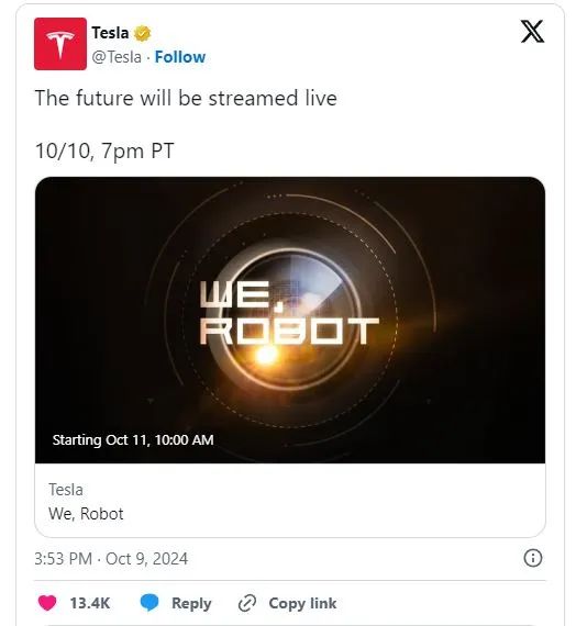 这场名为“We, Robot”(译为“我们,机器人”)的活动将在马斯克旗下社交媒体X上直播,尚不清楚谷歌YouTube会否同步直播,散户投资者也有机会参加。北美特斯拉门店有观看派对。