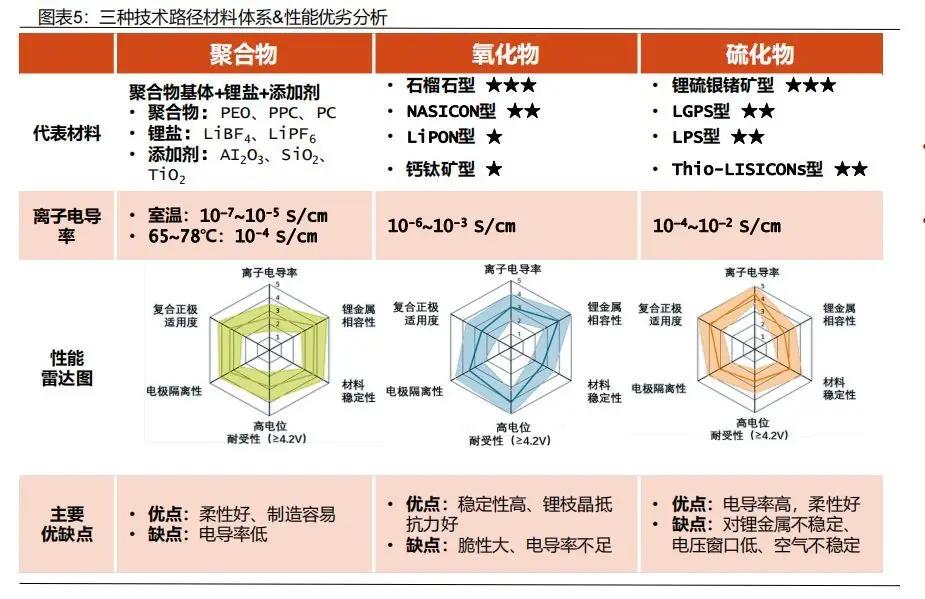 从技术路线上来看,目前国内固态电池的电解质路线主要包括聚合物、氧化物、硫化物。