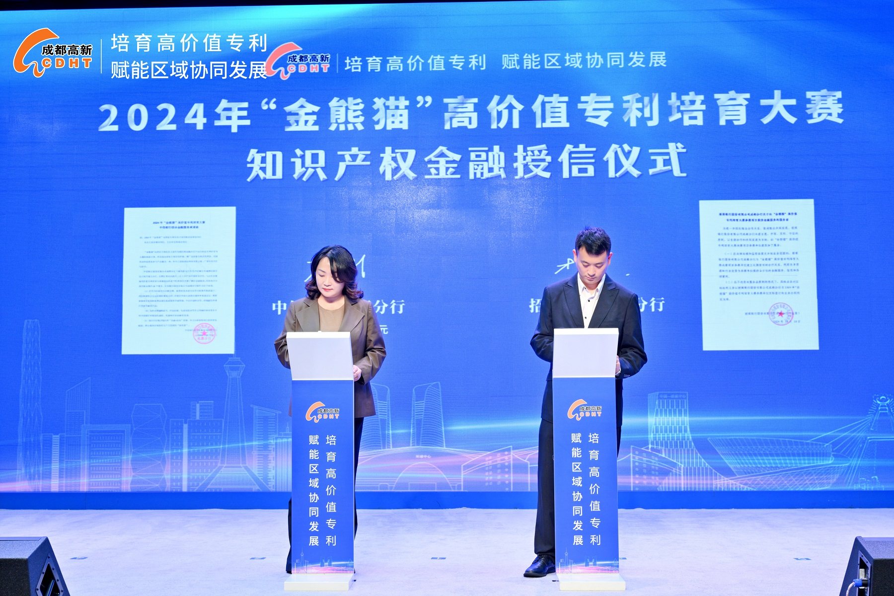 颁奖环节,招商银行成都分行、中信银行股份有限公司成都高新支行对进入决赛的项目进行融资授信,全力支持企业高质量发展的多元化金融需求。赛后,大赛组委会将通过搭建银企供需对接平台,持续为获奖企业提供融资对接服务,推动知识产权与创新资源、金融资本、产业发展的有效融合,实现知识产权成果向现实生产力转化。