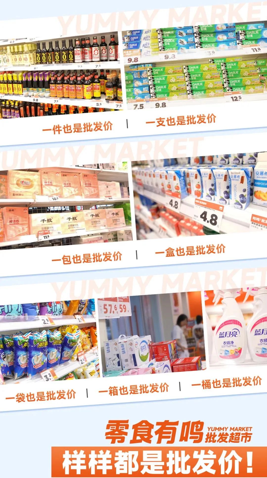 根据官方显示,零食有鸣的批发超市将选以社区、菜市场、农贸市场为主,门店面积普遍升级至200至400㎡;在商品结构方面,SKU数超3000+,除了鱼肉制品、酒水乳品、方便速食等休闲零食水饮外,还扩充了纸品日化、日用百货、米面粮油等日用和民生商品。
