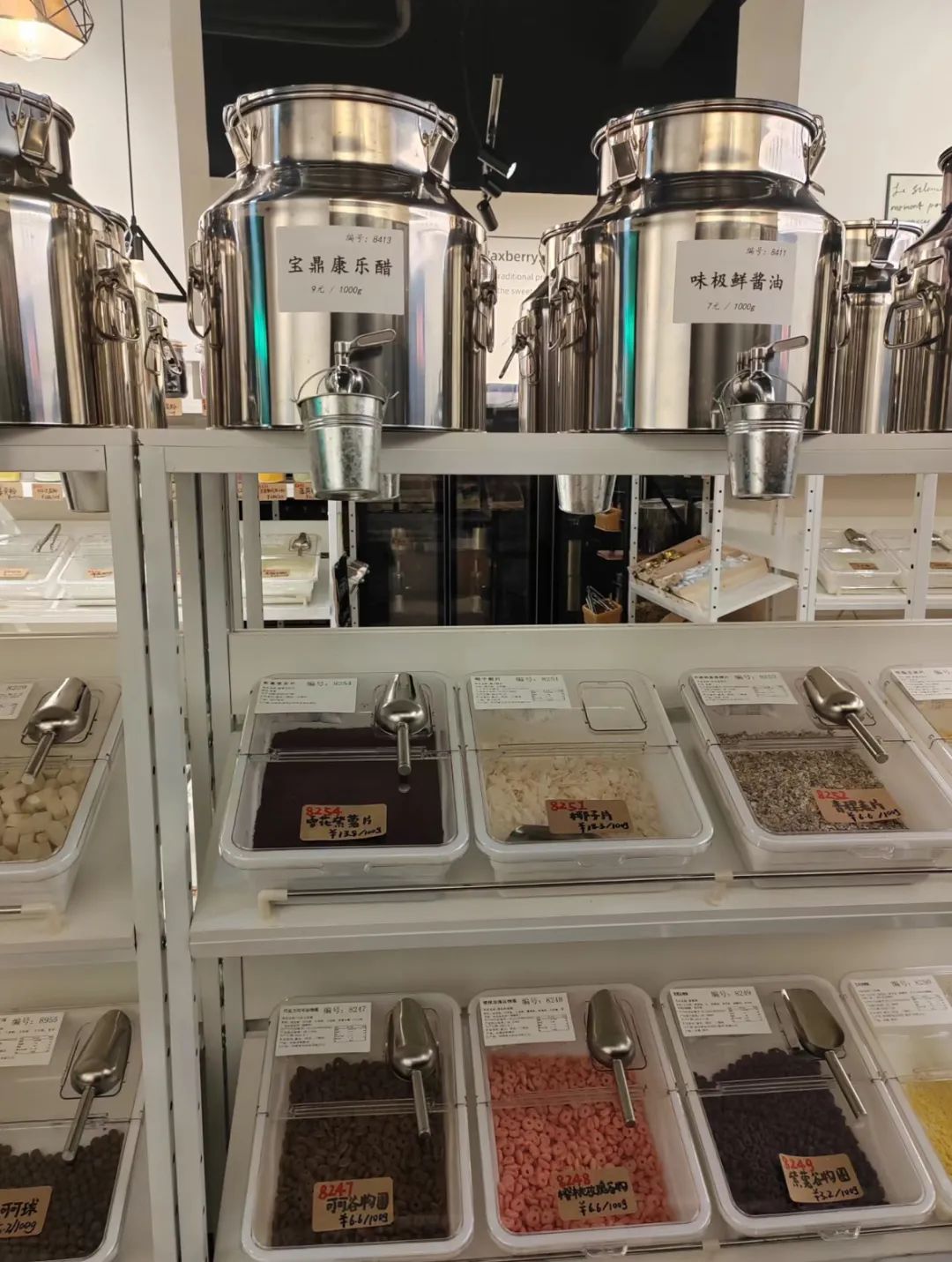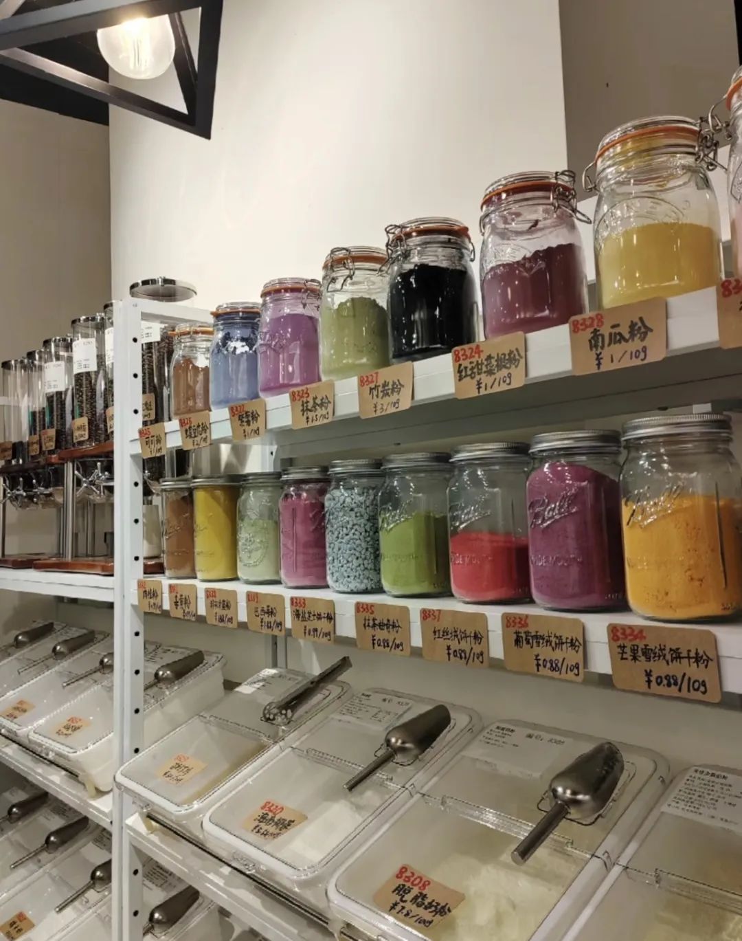 这种稍显古早的购物方式总能唤醒儿时陪父母逛超市的记忆,尤其是听到铲子插进燕麦和果干的“沙沙”声,让人怀念起用手指戳大米的感觉。