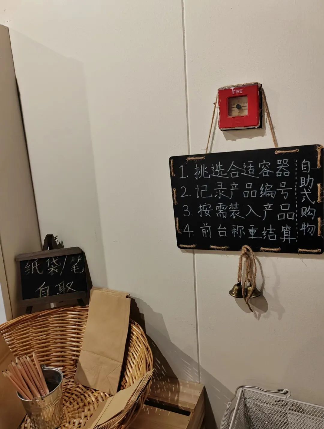 更不用说店内体验感拉满的购物流程了——先在入口处取几个纸袋,再去寻找想要购买的产品,将对应的编号写在袋子上,最后用铲子或者食品夹盛出所需的用量。心里没谱儿的话,旁边的电子秤可以帮助你准确称重。每次看到KK用做着精致美甲的手折好纸袋,把它们一个贴一个地码放在购物筐里时,心里都不由得一阵舒爽。