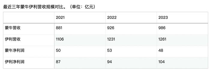 不过遗憾的是,卢敏放没能完成5年前提出的“双千亿”目标。在2021年至2023年,蒙牛的营收分别为881亿元、926亿元、986亿元,增速放缓且未能突破千亿规模。2023年蒙牛最新财报显示,蒙牛在2023年全年实现营收986.2亿元,同比增长6.5%,净利润则下滑至48.09亿元,比去年同期下滑9.3%,这让蒙牛遭遇自2021年以来的净利润首次下滑。