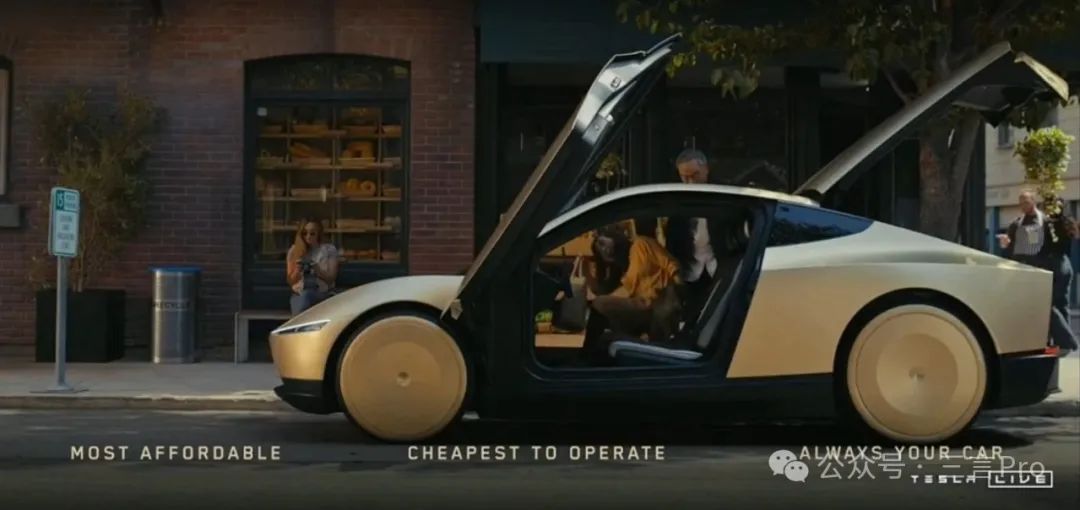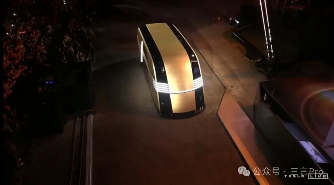 发布会开始,马斯克就乘坐一辆特斯拉Robotaxi登场亮相,而这辆车的官方命名为CyberCab。