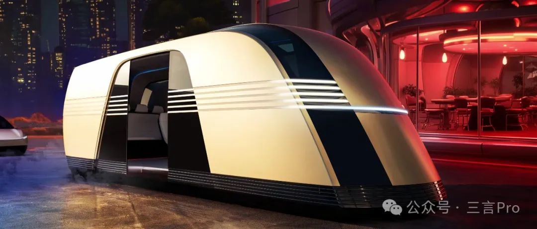 设计上,RoboVan也特别具有未来科技感,整体有点像电影《星球大战》中的载具。车辆类似一节火车头,但是没有前挡风玻璃,完全无人驾驶。内设多排座椅,也可改为装载货物。