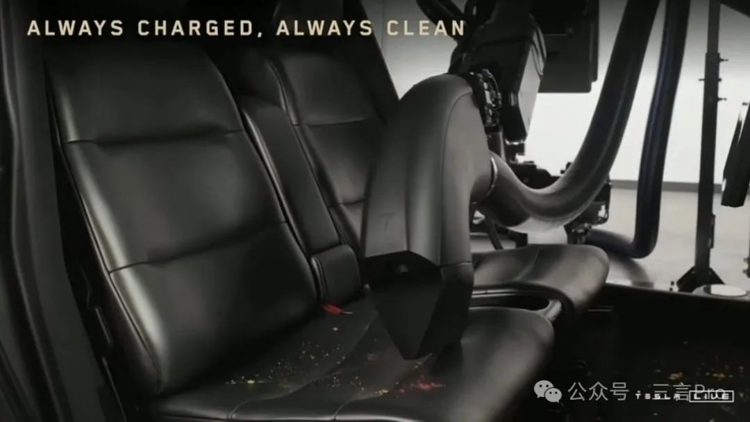 而对于无人驾驶出租车的清洁问题,发布会上还演示了CyberCab可通过机器人自动清理的过程。