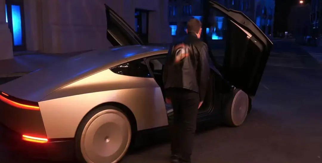 马斯克是坐着特斯拉Robotaxi的原型车登场的,这款车被命名为“Cybercab”,这款小车采用鸥翼门和两门两座版设计,适合坐2个成年人。
