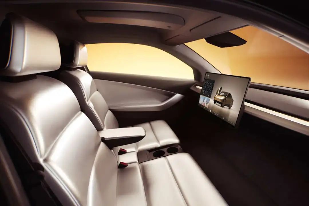 外观也高度还原了《埃隆·马斯克传》里透露的Robotaxi概念图,车内没有任何制动系统,前排只有一块中控大屏,可以看到后备箱空间也很充足。