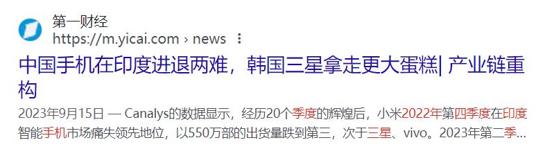 结果,韩国三星、美国苹果都分了杯羹,彼时占据印度手机市场2/3以上的中国手机品牌却没有一家入围。