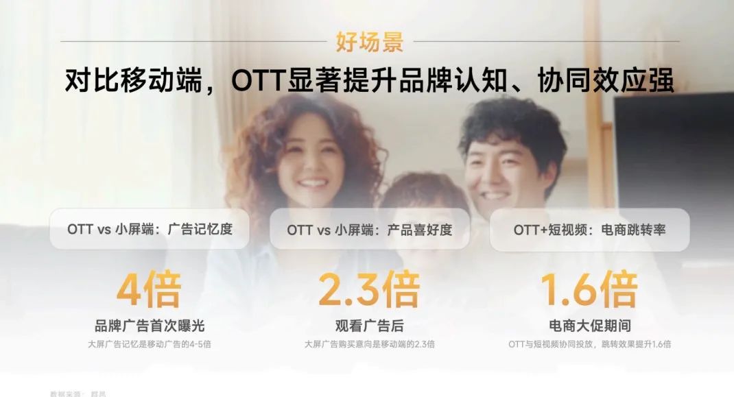 就传播环境来讲,对比其他一些户外媒体,OTT的传播环境更加纯净;相较于移动端平台,通过OTT传递出来的内容,也对于提升品牌认知与品牌建设有着更显著的作用。
