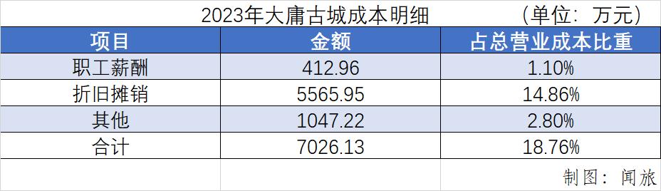 不管赚没赚到钱,成本依然需要支出。2023年大庸古城的营业成本主要来自职工薪酬、折旧摊销及其他,总计超7千万元,收入根本无法覆盖成本。