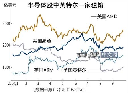 随着AI半导体日趋受到期待,很多半导体企业的股价都在上涨,在此背景下,英特尔的股价却处于“一家独输”的状况。在看不到增长前景的情况下,总市值急剧下降,因此出现了英特尔本身被收购等并购(M&A)的预期。