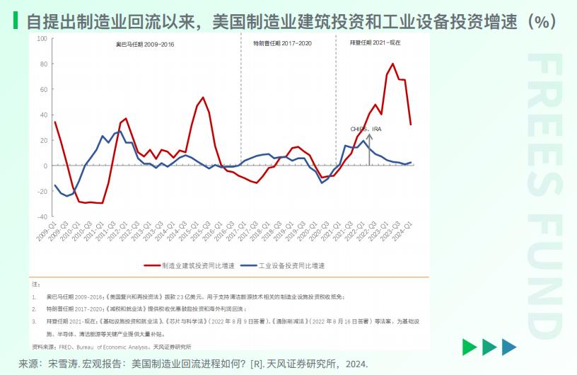 自 奥巴马时代 起,美国历届政府都把 制造业回归 作为其经济政策的关键部分。从奥巴马政府推行的 再工业化 和制造业复 兴 ,到特朗普政府的 制造业回归 ,再到拜登政府的 一系列制造业复兴政策 ,都服务于 美国制造业回流 的目标。