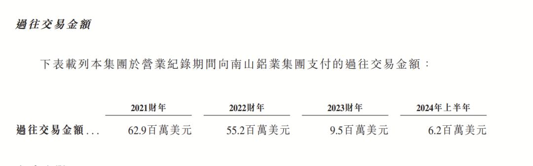 《招股书》显示,2021年至2024年上半年,南山铝业国际从母公司南山铝业的采购金额有所波动,分别为6290万美元、5520万美元、9500万美元和6200万美元。但总体占比有所下滑,2021年占总采购金额的比例达30.8%,到了2024年上半年,逐渐下降至15.5%。