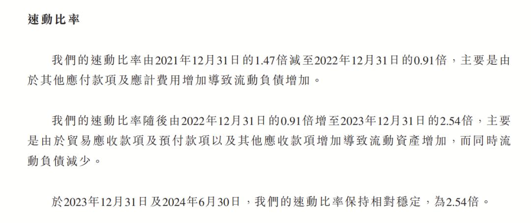 好在公司在2023年有所改善,流动比率提升到3.42,速动比率也达到了2.54,偿债压力有所缓解。根据《招股书》可知,2022年至2023年,南山铝业国际的资产负债率也从约22.4%下降至11.7%。