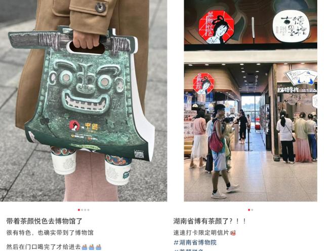 不仅如此,茶颜悦色、茶百道等知名品牌也纷纷抢滩博物馆市场。茶颜悦色于 8 月在湖南博物馆开设首家门店,运用现代艺术手法生动重现了馆内的珍贵文物图案,并推出了限量版饮品及文创产品,一经推出便火速售罄。