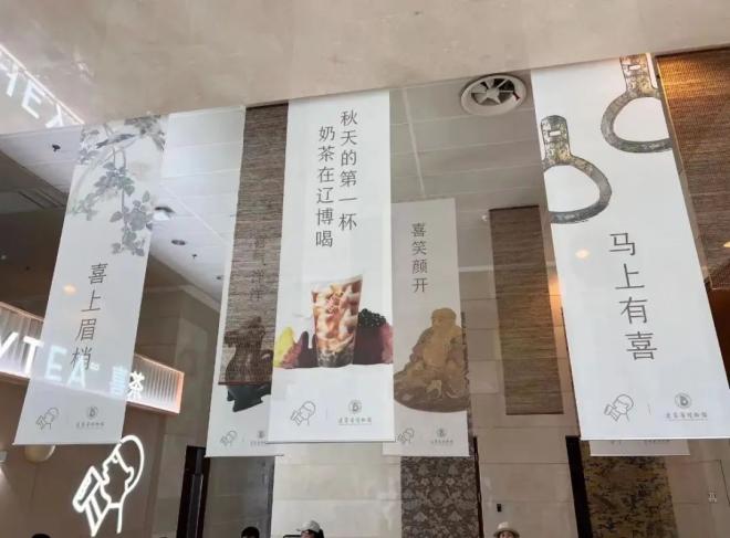 2024 年 7 月,喜茶强势进驻辽宁博物馆三楼,精心打造了一家融合文物元素的博物馆茶饮店。店内装饰与馆内文物装饰画相得益彰,为顾客营造了一个现代与历史交织的独特消费空间。