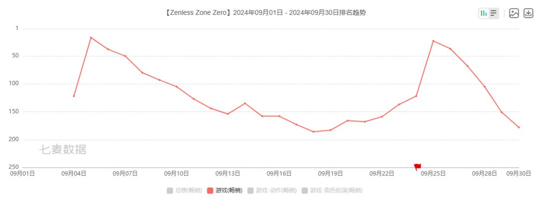 最后来看看《绝区零》在9月的表现。随着1.1下半卡池中限定S级代理人“简”的登场,以及1.2版本“火狱骑行”和限定S级代理人“凯撒”的上线,《绝区零》上月分别迎来两波收入高峰,反映出其不俗的市场潜力。