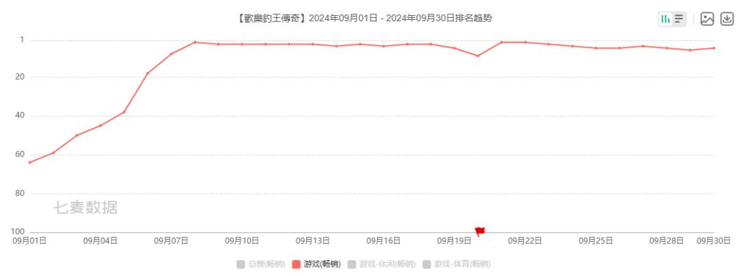 (9月《欢乐钓王传奇》台湾地区iOS游戏畅销榜榜单情况)