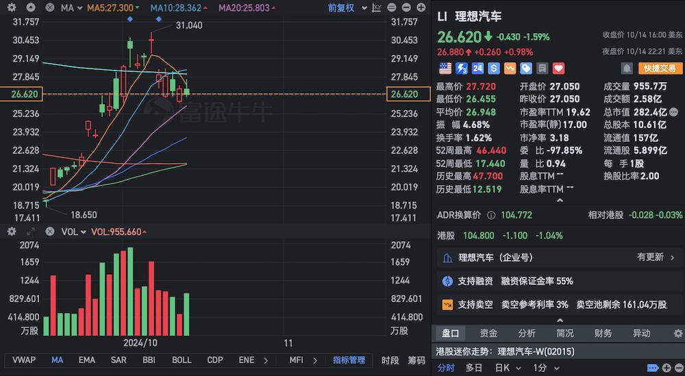 截止到目前,理想股价夜盘微涨,报26.88美元/股(约合人民币190.88元/股),总市值282.4亿美元(约合人民币2005亿元)。