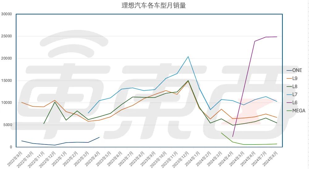 从图中不难看出,理想L7在2023年底交付后就开始抬头,而理想L6在2024年4月交付后便一骑绝尘。