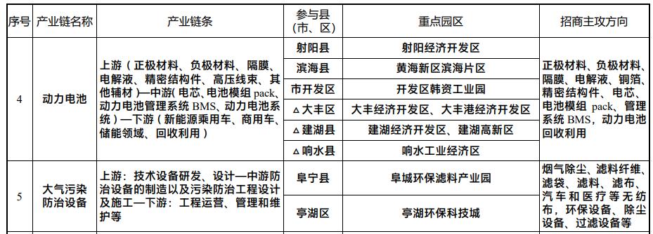 2022年,《盐城市重点产业链培育行动计划(2022-2025年)》提出,聚力打造晶硅光伏、动力电池等5条规模较大、龙头突出的地标性产业链。开展精准招商,编制招商地图,制定各产业链可招引的链主企业、头部企业清单和配套企业清单,挂图作战。