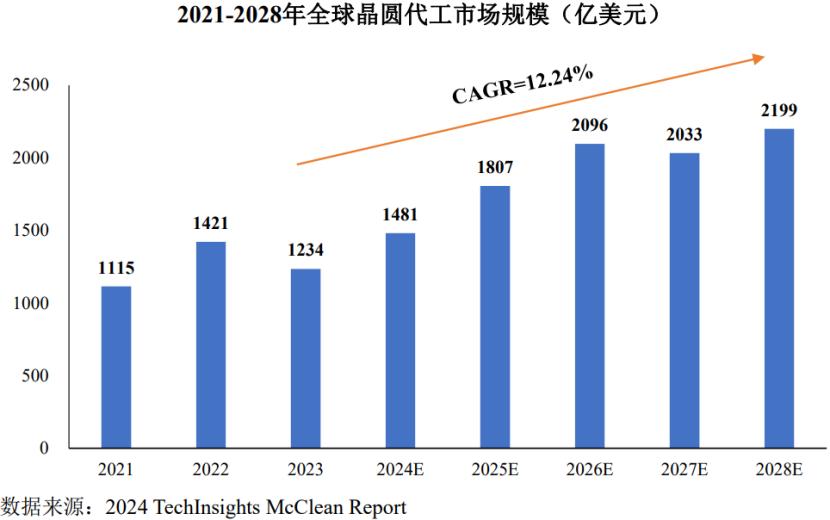 2021-2028年全球晶圆代工市场规模,来源:招股书